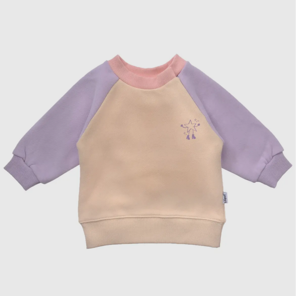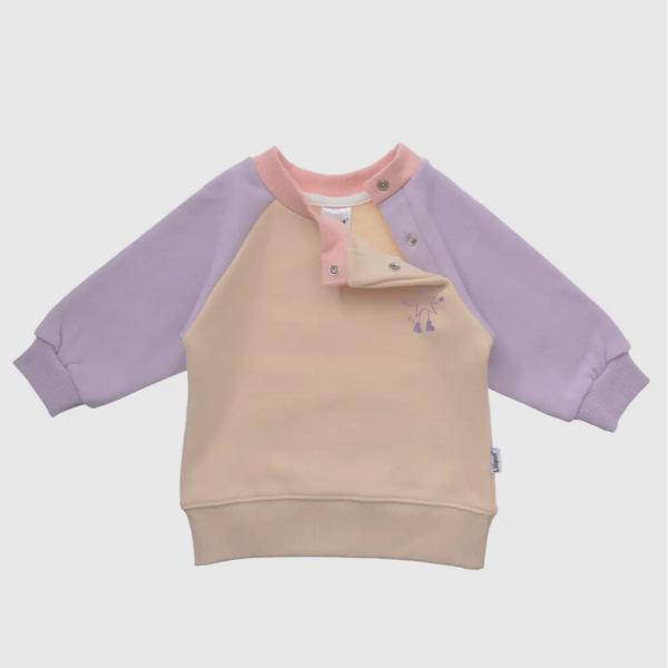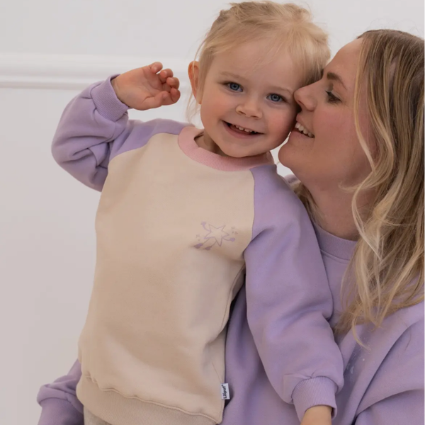 Deze sweater is favoriet! De fijne kleuren matchen perfect met elkaar en staan ieder kindje prachtig! De lila mouwen, roze halslijn en beige body straalt jouw kleintje! Super gezellige sweater. Tot en met maat 86/92 heeft de sweater 2 verborgen drukknoopjes bij de hals waardoor hij makkelijk aan te trekken is.