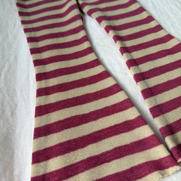 Prachtige, zachte flaired broek van 100% merino wol. Kleuren; roze en licht zand. Van het merk Petit by basics