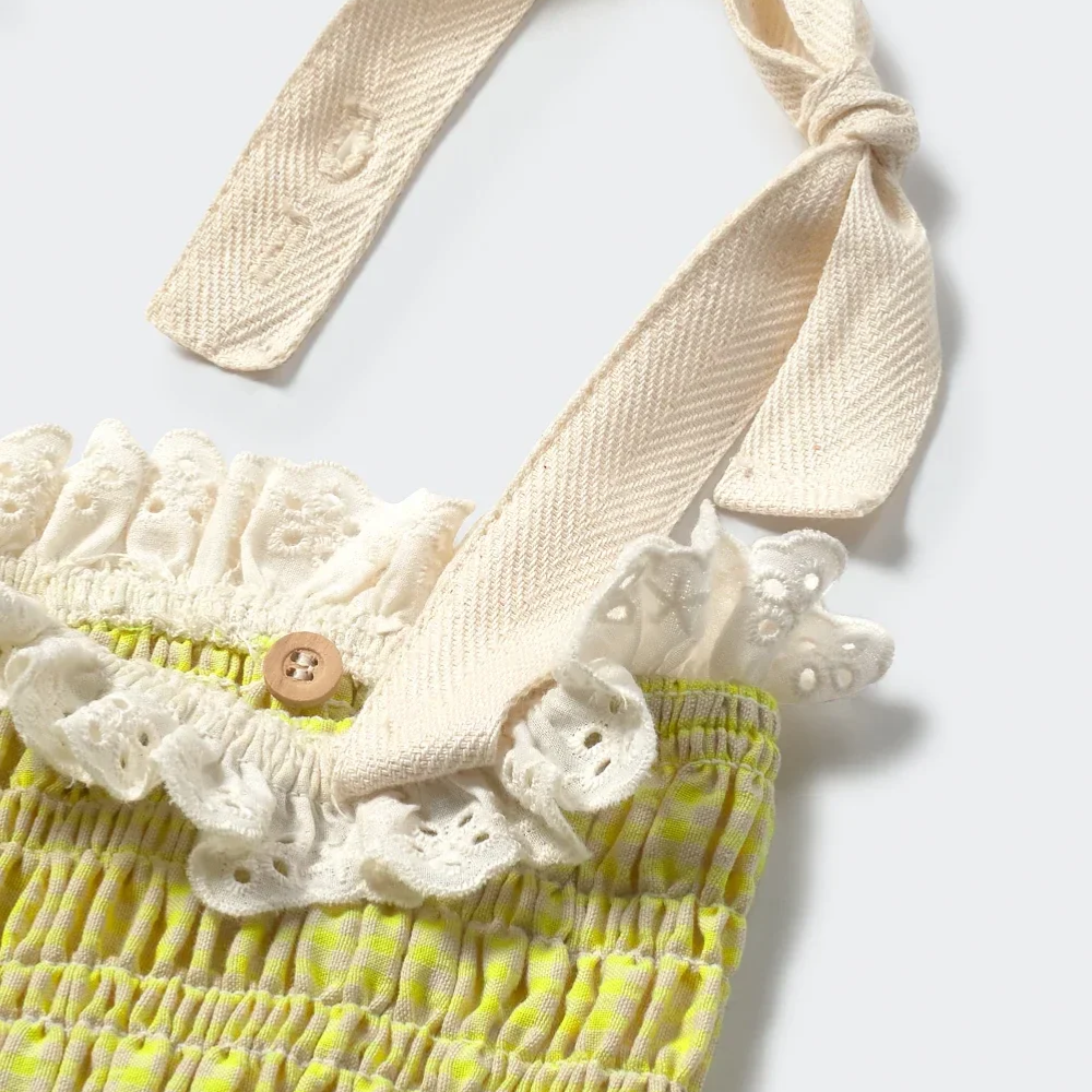 Gingham top neon geel | My Little Comzo